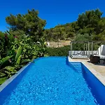 Villa Amarantos dysponuje tarasem z widokiem na górę oraz prywatnym basenem kąpielowym.